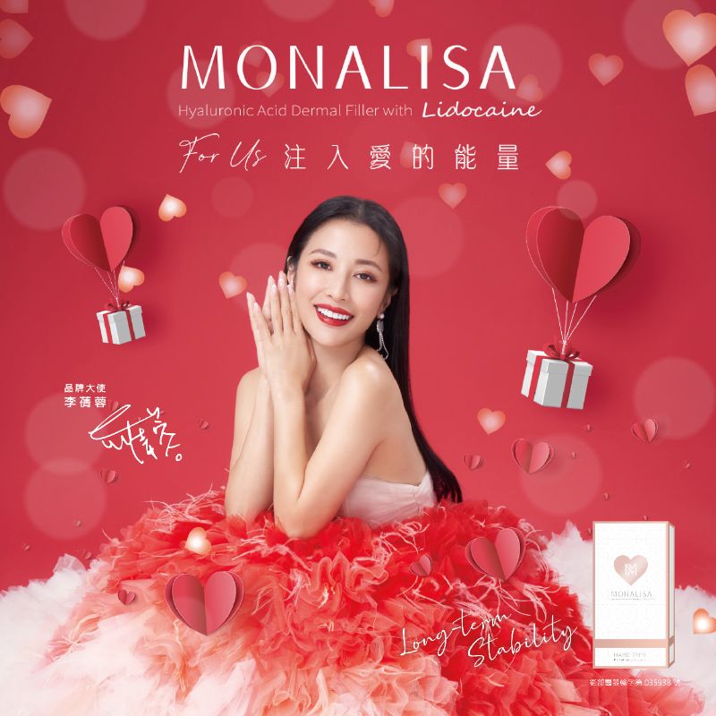 《愛。蒙娜麗莎玻尿酸》創新結合了顆粒型及凝膠型玻尿酸的優勢,內含大小均勻微粒能夠有效雕塑自然柔順的線條,安全低敏的特性可作為消費者初次嘗試微整注射的理想選擇。此外經過注射後長達 24 週多項臨床試驗的結果,《愛。蒙娜麗莎玻尿酸》之於它牌在鼻唇溝和皺紋都有明顯的改善,因此在韓國與其他已上市國家的指名與滿意度極高,就像《愛。蒙娜麗莎玻尿酸》美麗大使-李蒨蓉跟大家分享的:「使用《愛。蒙娜麗莎玻尿酸》為我注入滿滿愛的能量,讓我展現自然澎潤的美感!」